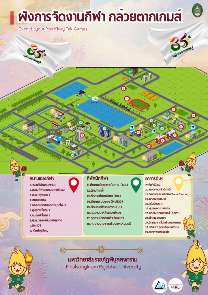 กองพัฒนานักศึกษา มหาวิทยาลัยราชภัฏพิบูลสงคราม ขอเชิญบุคลากร มรพส. และ ชาวพิษณุโลก ทุกท่านร่วมเป็นเจ้าภาพและติดตามการแข่งขันกีฬา 8 มหาวิทยาลัยราชภัฏภาคเหนือ “กล้วยตากเกมส์” ระหว่างวันที่ 30 พ.ย.-5 ธ.ค.68 ณ มหาวิทยาลัยราชภัฏพิบูลสงคราม ส่วนทะเลแก้ว ผ่านทาง website https://sport.psru.ac.th