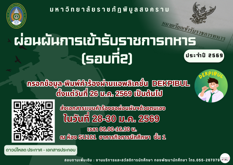 banner slide รับสมัครผู้ประสงค์ให้มหาวิทยาลัยผ่อนผันเข้ารับราชการทหาร ประจำปี พ.ศ.2569 (รอบที่ 2)21/01/202622/01/2026