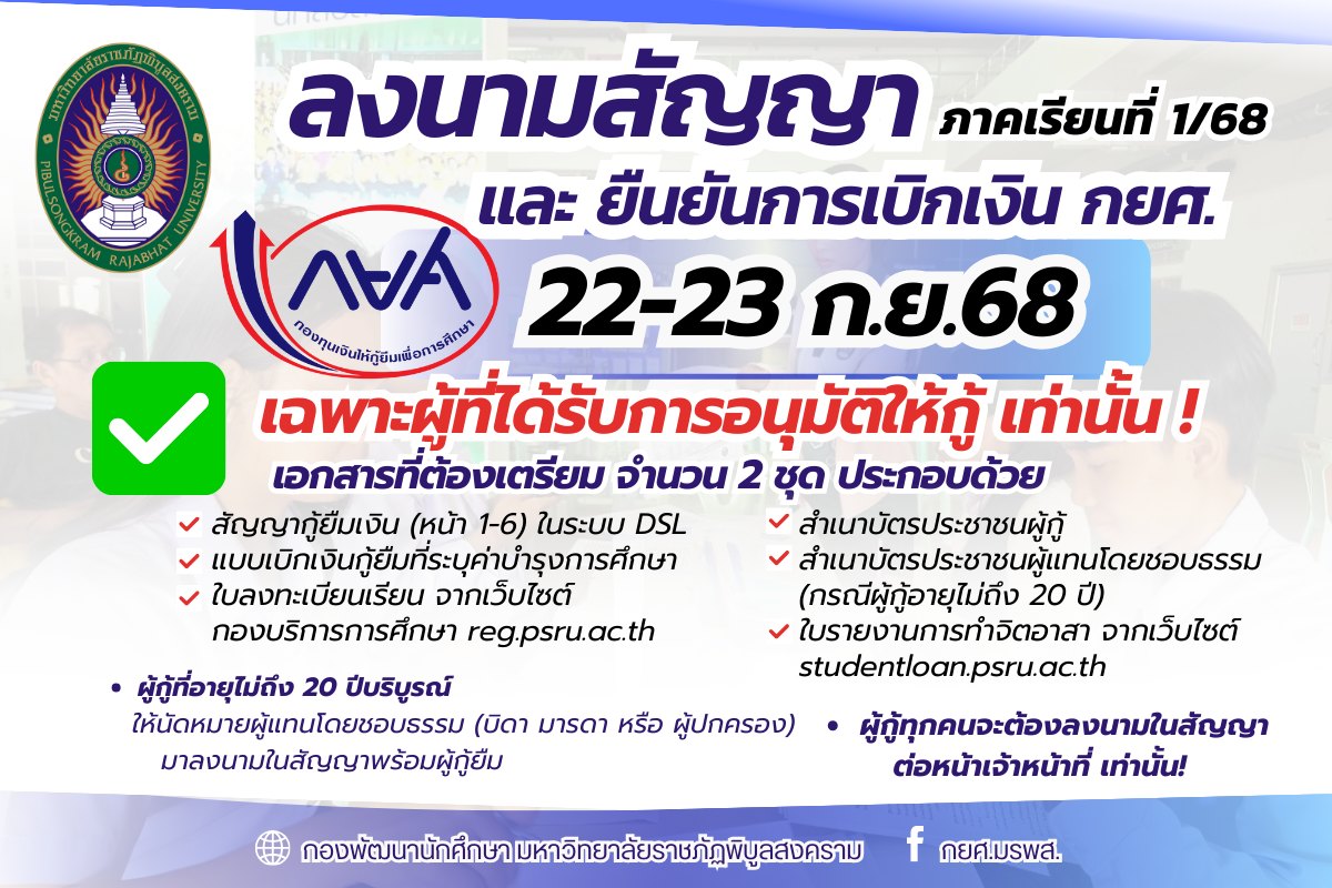 นัดหมายนักศึกษาทำสัญญาและแบบยืนยันการเบิกเงิน กยศ.