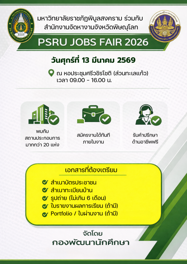 เตรียมตัวให้พร้อม! นัดพบแรงงานครั้งสำคัญ “PSRU JOBS FAIR 2026” ![]()